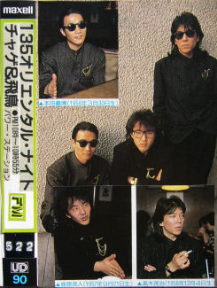 ○ナスカの風 ○自由な蟻 ○トキオの顔 ○Just a Memory ○0%麗人 ○我愛你 ○湾岸Night ○奈落へ 135: 高木茂冶 b,vo、梶原茂人 vo,o,太鼓,笛,etc、本田義博 key,perc,g ;林有三 key、中島オバヲ perc 4月4日、FM東京レコーディング・スタジオにて '86年5月にシングル・デビューで、ファースト・アルバムは'87年2月にリリースされているらしい。名前を知っていたとは思えないし、ロック系の僕が知らないバンドだとあまり聞こうとしなかったので、どうしてチェックしたのかよく分からない。 たまたま聞く気になったのか、FM誌の番組案内を読んで聞く気になったのか。それはともかく、聞いてみたらその音楽もそこそこ気に入ったし、数字のグループ名で名前を覚えた。 ネットで調べたら、梶原さんは元・ウェストウッドというグループにいたそうだ。ウェストウッドはサザンオールスターズのライブで聞いている。後に、「ミュージック・ウェイブ'86」でも聞いている。どちらも、1曲だけなんだけどね。ボーカルに「かじわら」という記録があるので、それが梶原さんなんだろう。 PR |