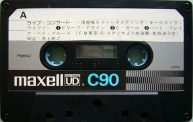 ○C-Girl ○Heartbreak Bay Blues ○Cry On ○Kiss of Fire ○Star ○瞳にSTORM ○千年天使 ○ヤッパシ・・・H! ○コンプレックス・BANZAI! (D.J.)fade out 浅香唯 呼吸困難(仮): こみねみゆき cho、なとりゆかり cho、すずきたかお perc おおほりかおる b、西川貴博 ds、みまつたけお g、こぼりひろし g はせがわひでお key、かわちひでお key FM東京レコーディング・スタジオより生中継 浅香唯さんに関しては「アイドルの一人」くらいの認識しかなかったと思います。「スケバン刑事」に出演していたくらいは知っていたと思うけど、ドラマは見ていなかったし、歌に関しても<C-Girl>くらいしか知りませんでした。 この番組は楠瀬誠志郎さんの回をチェックした後、3週聞いてなかったんですけど、アイドルということで聞いてみる気になったのかも。そして、使い回しのテープで録音することにしたんじゃないかと思います。ちなみに、そのチェックしなかった回は、アン・ルイスさん、浜田麻里さん、小堺一機さんの出演でした。 この日のバック・バンドは呼吸困難。まだ仮の名前だったようですが、以降はどうなったのでしょう?知らないミュージシャンばかりで聞きとったまま書いています。 Wikipediaによると、ドラムの西川貴博さんと2002年7月に入籍したようで、14年間の交際ということは、この頃からの付き合いということですね。 PR |