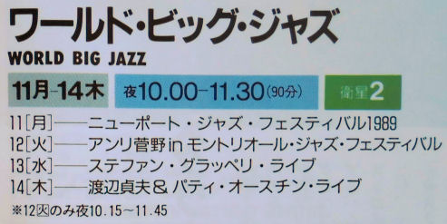 [WORLD BIG JAZZ 4]NHK-BS,1989年9月14日