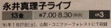 [永井真理子ライブ~WASH! WASH! WASH!]WOWOW,1991年9月13日