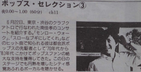 [ポップス・セレクション③]<南佳孝>NHK-BS,1991年8月21日