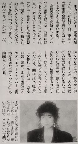 [Lady Coast]<高橋真梨子ライブ>WOWOW,1992年12月22日