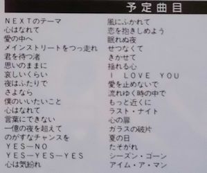 どのライブで演奏されているのか分からないけど、放送予定曲目は以下の通りです。