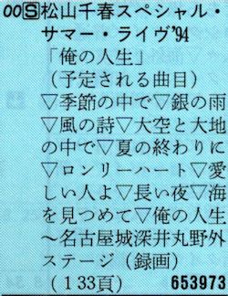 ○ ○ ○ ○ ○ ○ ○ ○ ○ ○ 松山千春 8月11,12日、名古屋城深井丸野外ステージにて 19時からの2時間番組。 マクセルHGテープに録画してDVD-Rにも焼いたけど、内容をメモしていないんですよね。 調べる時間がないのでこのままで。 以下に当時のBS番組掲載誌の番組表を。